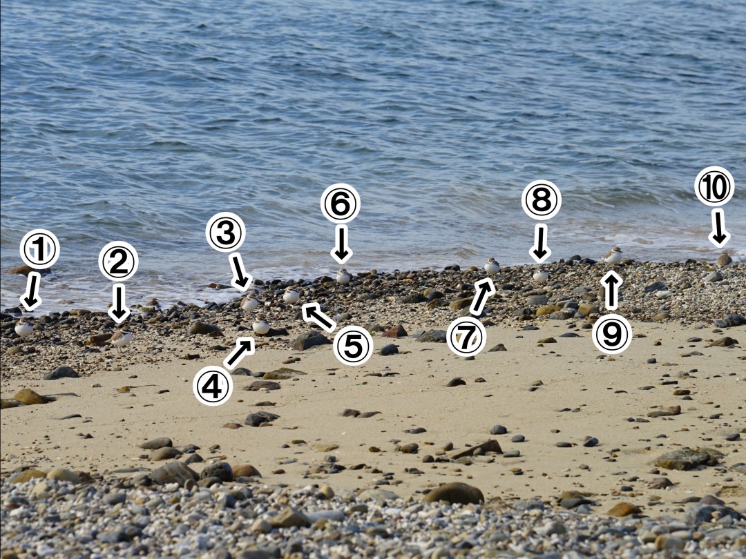 今月の中旬頃から、満潮線や波打ち際で10羽前後の