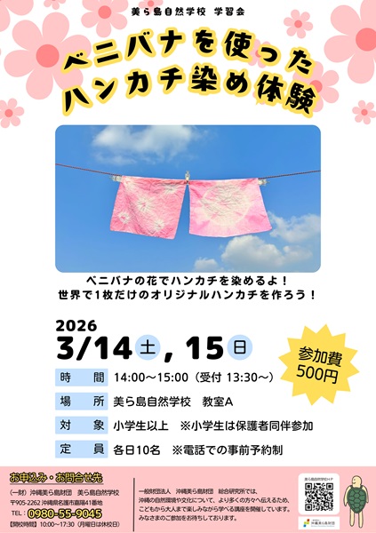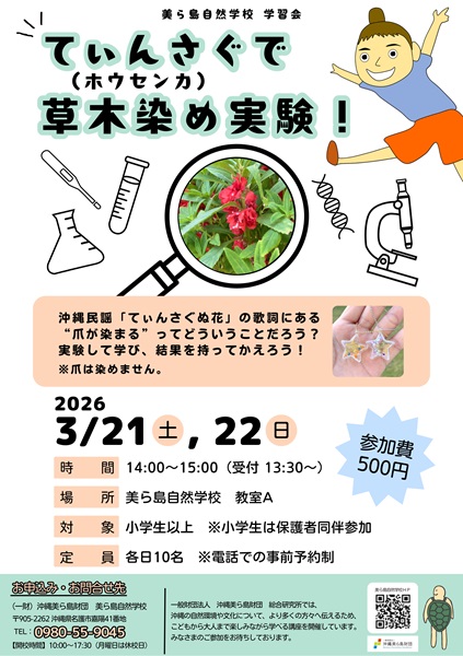 美ら島自然学校でも、植物に関連した学習会を2週連続で開催しますので、