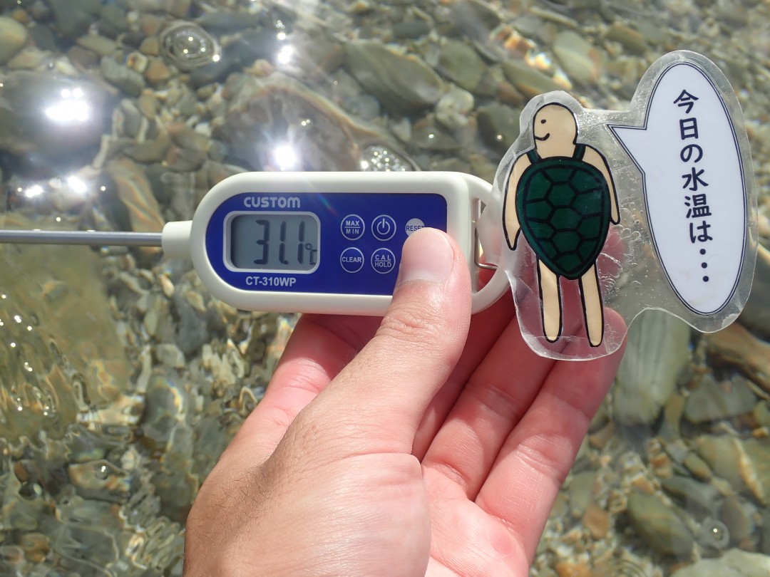 波打ち際の水温は31.1℃。