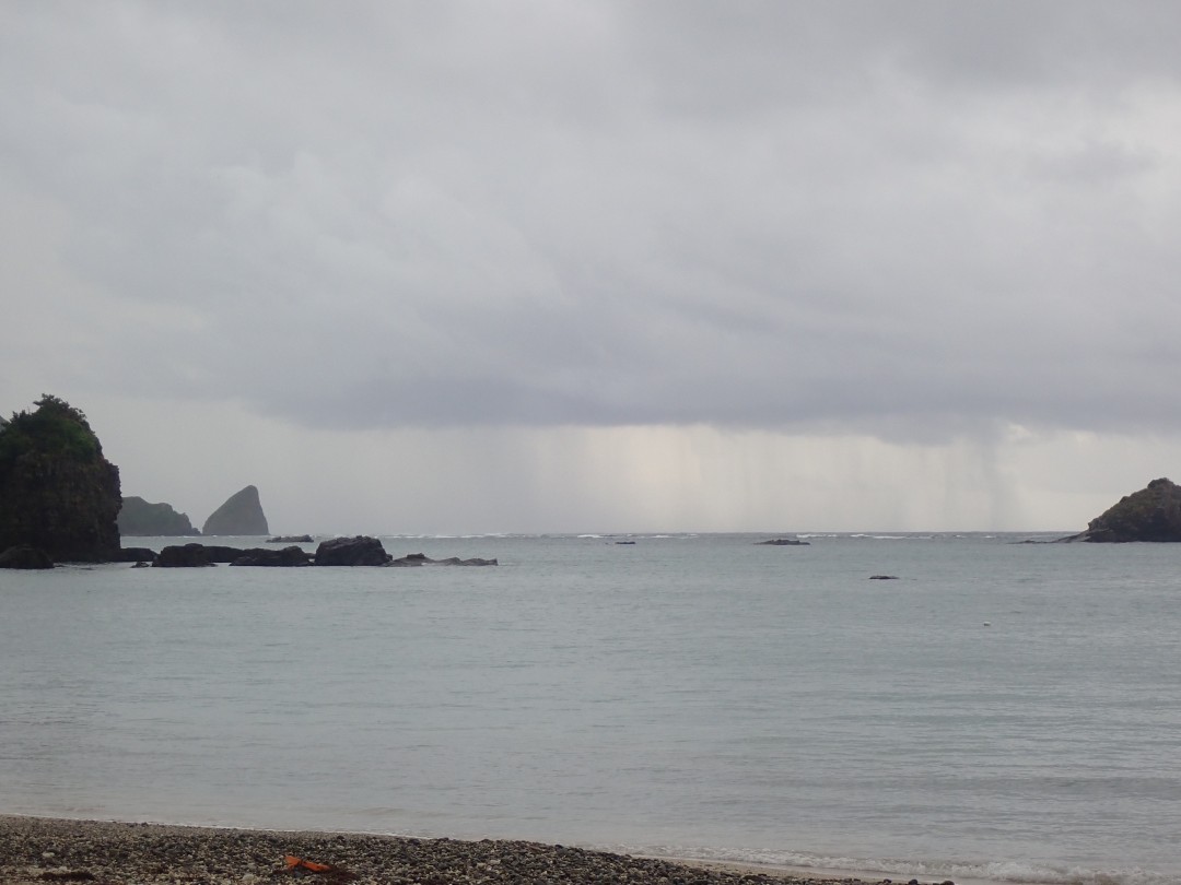 バン崎沖あたりはまだ降っていますね…。