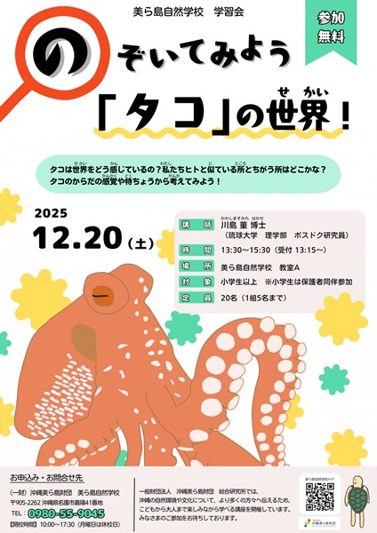 美ら島自然学校では、下記の学習会と工作教室を開催予定です。