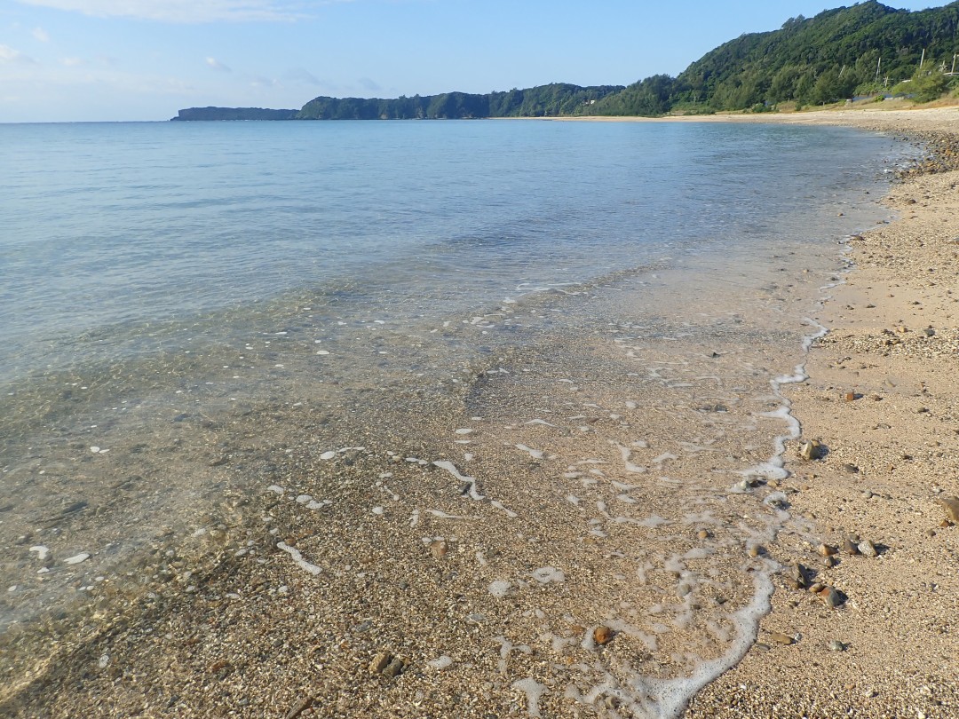 水面(みなも)がキラキラ、波の音がザザーッと聞こえる...