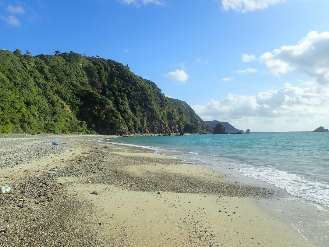 気温は暖かいですが、海岸では涼しい風が吹いていて、とても気持ちがいいです。