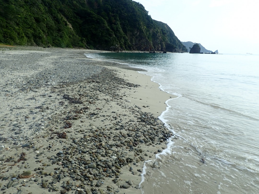 波打ち際の水温は19.7℃。