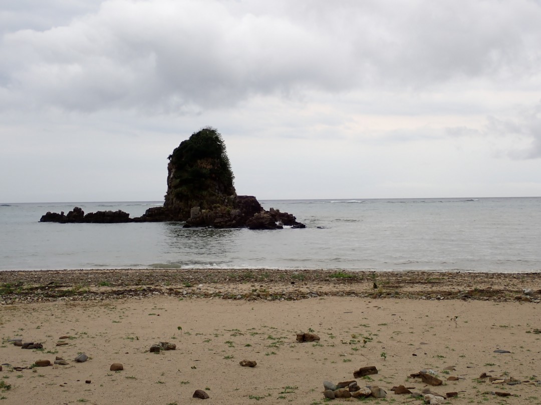 夜から朝にかけて大雨が降っていましたが、現在の海岸、雨は止んでいます。どんよりと暗めの空ですが、気温は高めで半袖でも寒さを感じません。