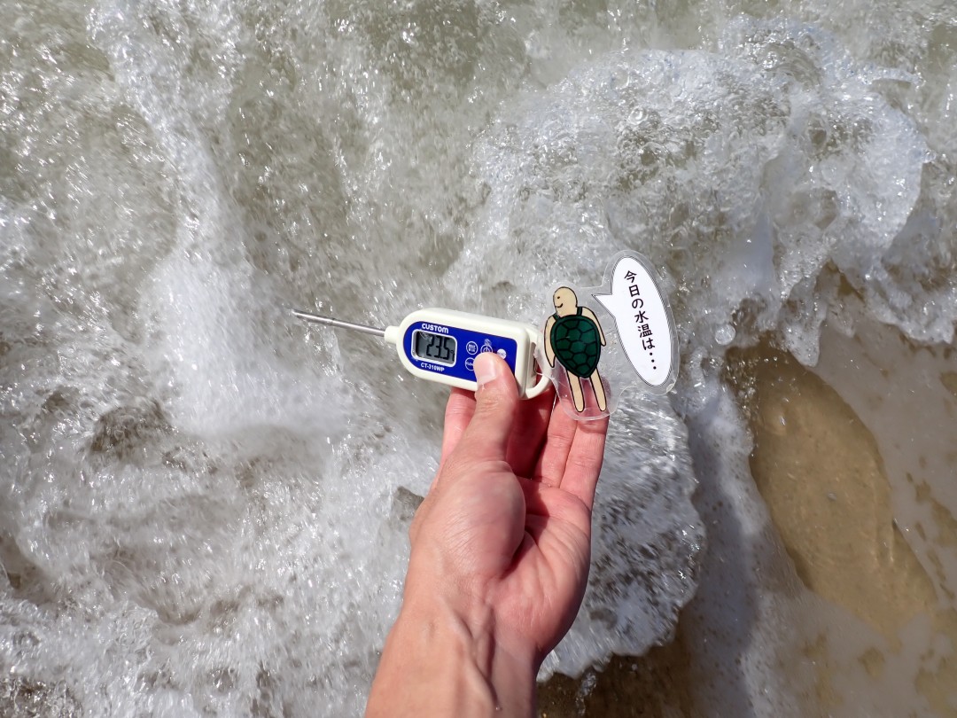波打ち際の水温は23.5℃。
