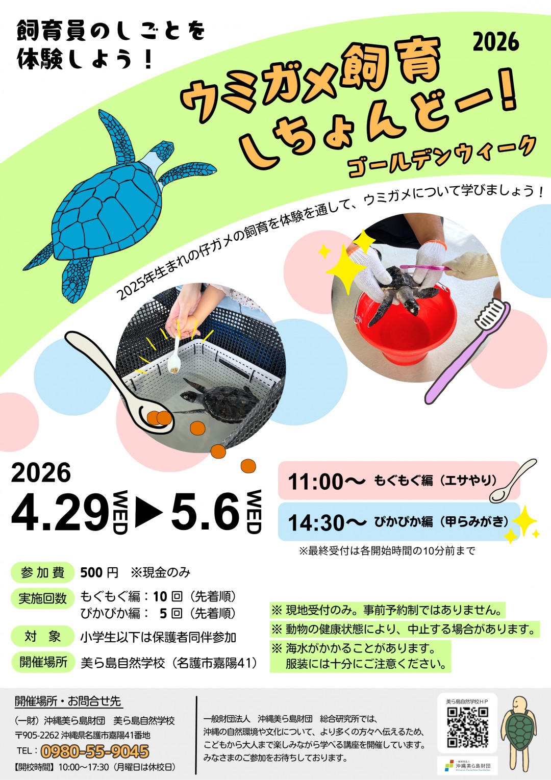 ゴールデンウィークに開催!「ウミガメ飼育しちょんどー!2026 GW」