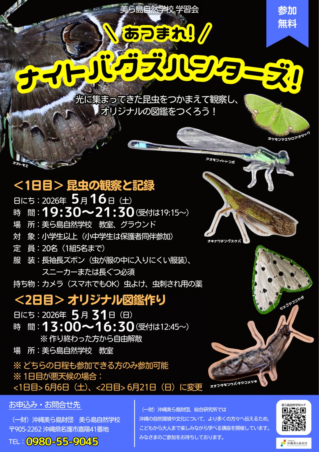 電話のみ(美ら島自然学校 0980-55-9045)