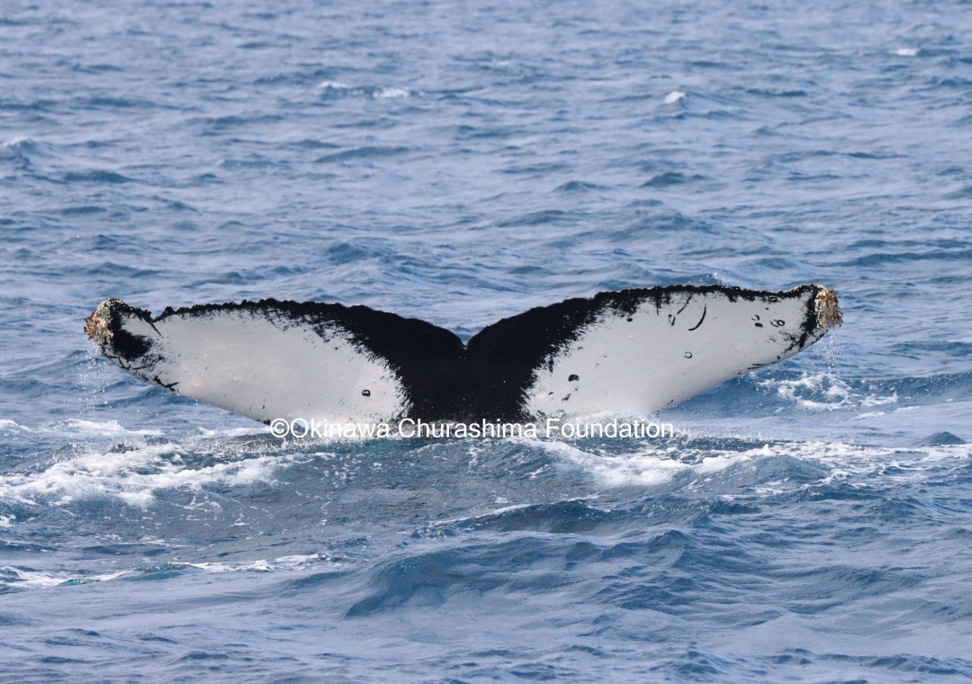 ザトウクジラの尾びれ腹面の模様は真っ白いもの、真っ黒いもの、白黒混ざったものなど個体により様々で、これを利用し個体識別をすることができます。当財団では、30年以上に及ぶ調査により約2000頭の個体を識別しています。昨シーズンは慶良間海域と本部海域の調査でのべ348個体の尾びれ写真を撮影することができました。さて、今シーズンは何頭のクジラに出会えるでしょうか!?